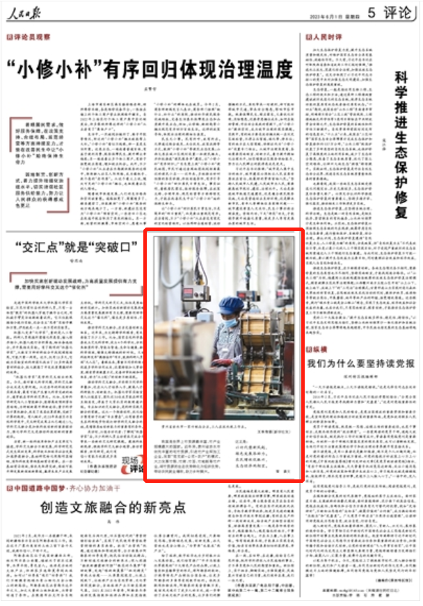 今天(6月1日),《人民日报》刊发图片新闻,报道贵州省赤水市大力发展竹筷、竹席、竹签、竹地板等竹产业。