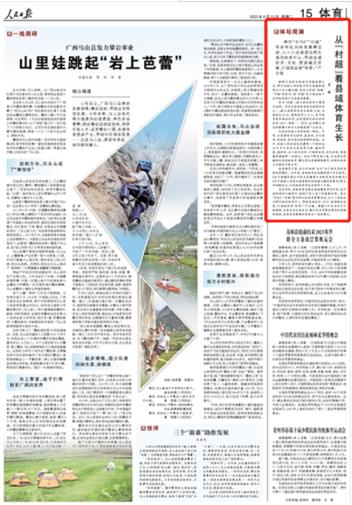 与此同时,县域体育发展也连接着城市与乡村,在中国体育的大格局中,起到了承上启下的重要作用。举办“村BA”“村超”等多样化的体育赛事活动,让小小县城成为跨区域的体育中心,带动县域经济、文化、旅游融合发展,打造起县域“体育+”产业链。随着人们生活水平不断提高,丰富业余文体生活、提升生活质量的需求还将持续高涨,县域体育赛事还将有更广阔的舞台。