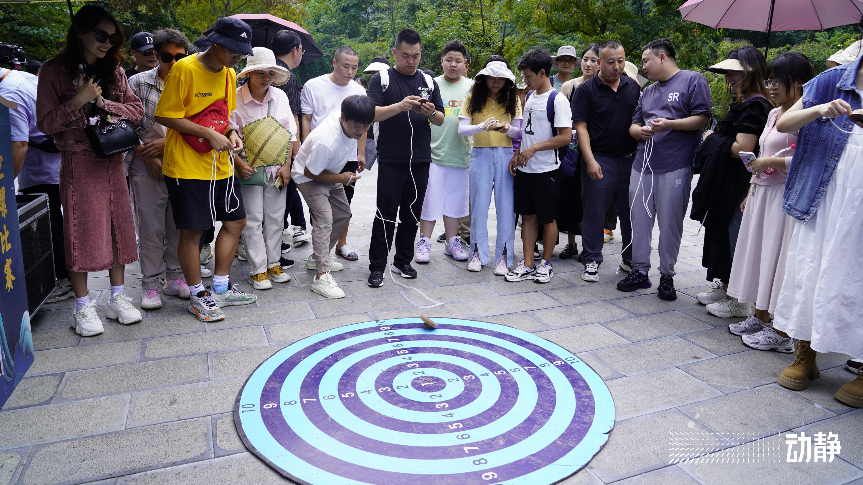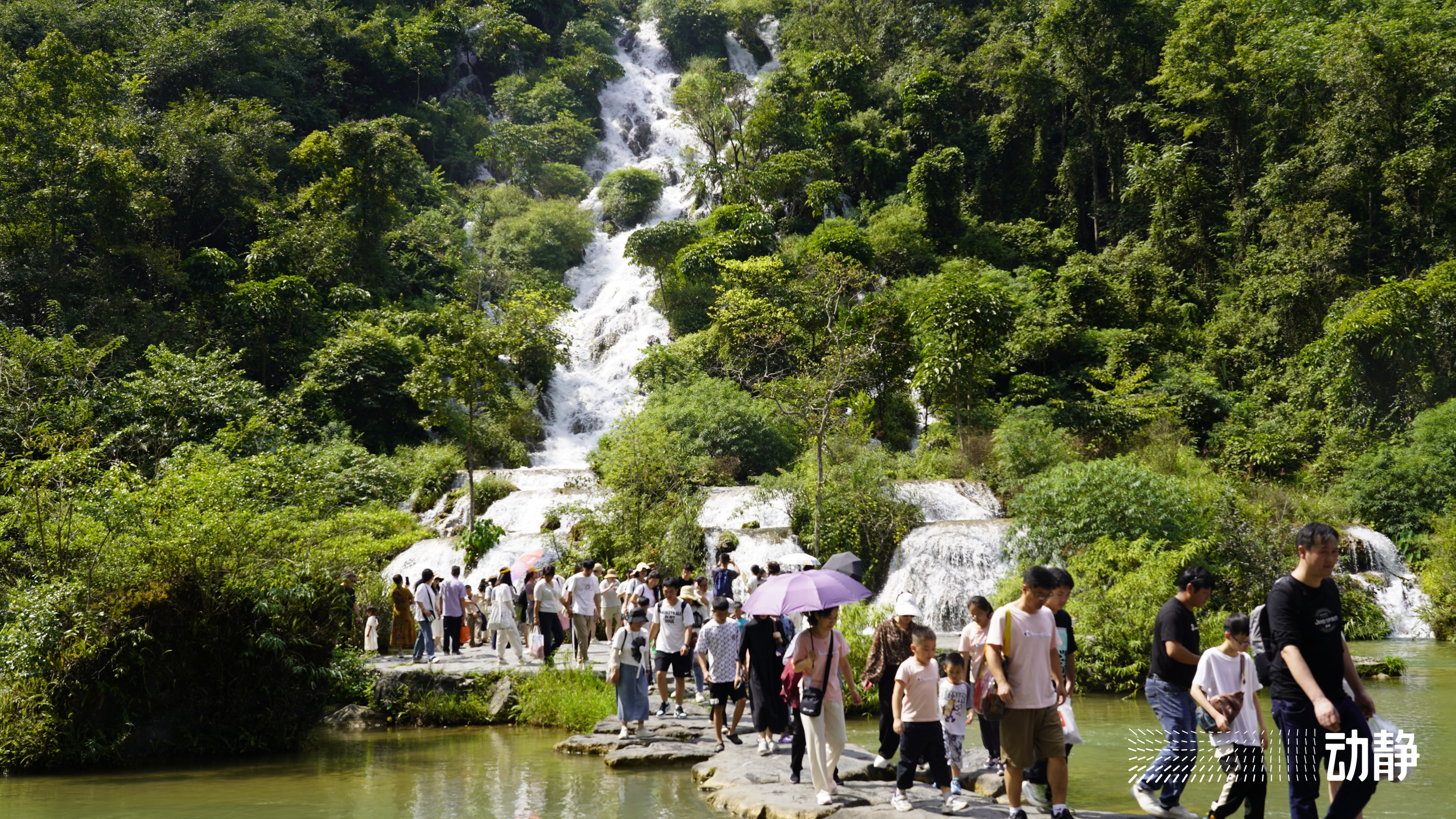这里绿意葱茏,碧水盈盈,游客们沉浸在如诗如画的山水间,感受假期的美好。中秋国庆假期,小七孔景区在翠谷瀑布设置了中秋抛绣球、投壶、体验打陀螺等趣味游戏,与广大游客共度佳节。