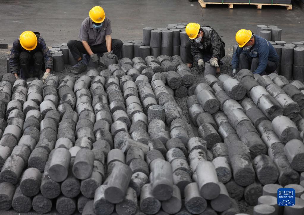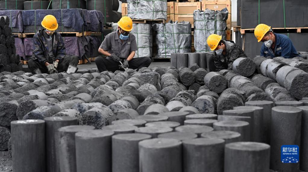 5月14日,工人在贵州岑巩经济开发区一家生产新能源材料的企业打磨石墨烯成品材料。新华社记者 杨楹 摄