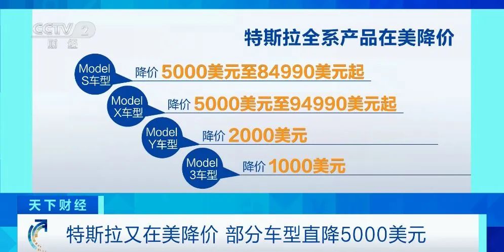 另据美国广播公司报道,7日,特斯拉美国官网显示,公司全系产品降价,其中Model S和Model X车型均降价5000美元,最受欢迎的Model Y车型降价2000美元,Model 3下调1000美元。特斯拉并未给出明确的降价原因,不过报道指出,特斯拉今年已进行多次降价,以提振市场需求。数据显示,今年1至3月,特斯拉在全球共交付近42.3万辆汽车,创下季度交付量纪录。