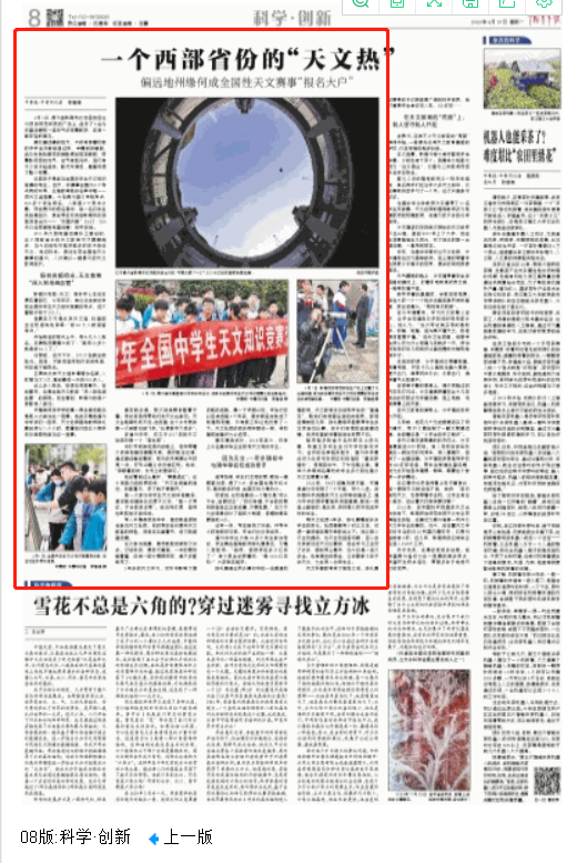 关于未来,王潇还有很多设想。他希望贵州省成为这一竞赛的常设考点,希望开发研学活动,带更多孩子走进天文的世界。