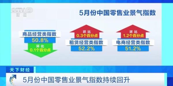 5月6日,中国商业联合会发布5月份中国零售业景气指数为51.1%,较上月微升0.3个百分点,连续5个月保持在荣枯线以上。数据显示,零售业全面复苏态势正在形成,企业经营信心进一步提高。