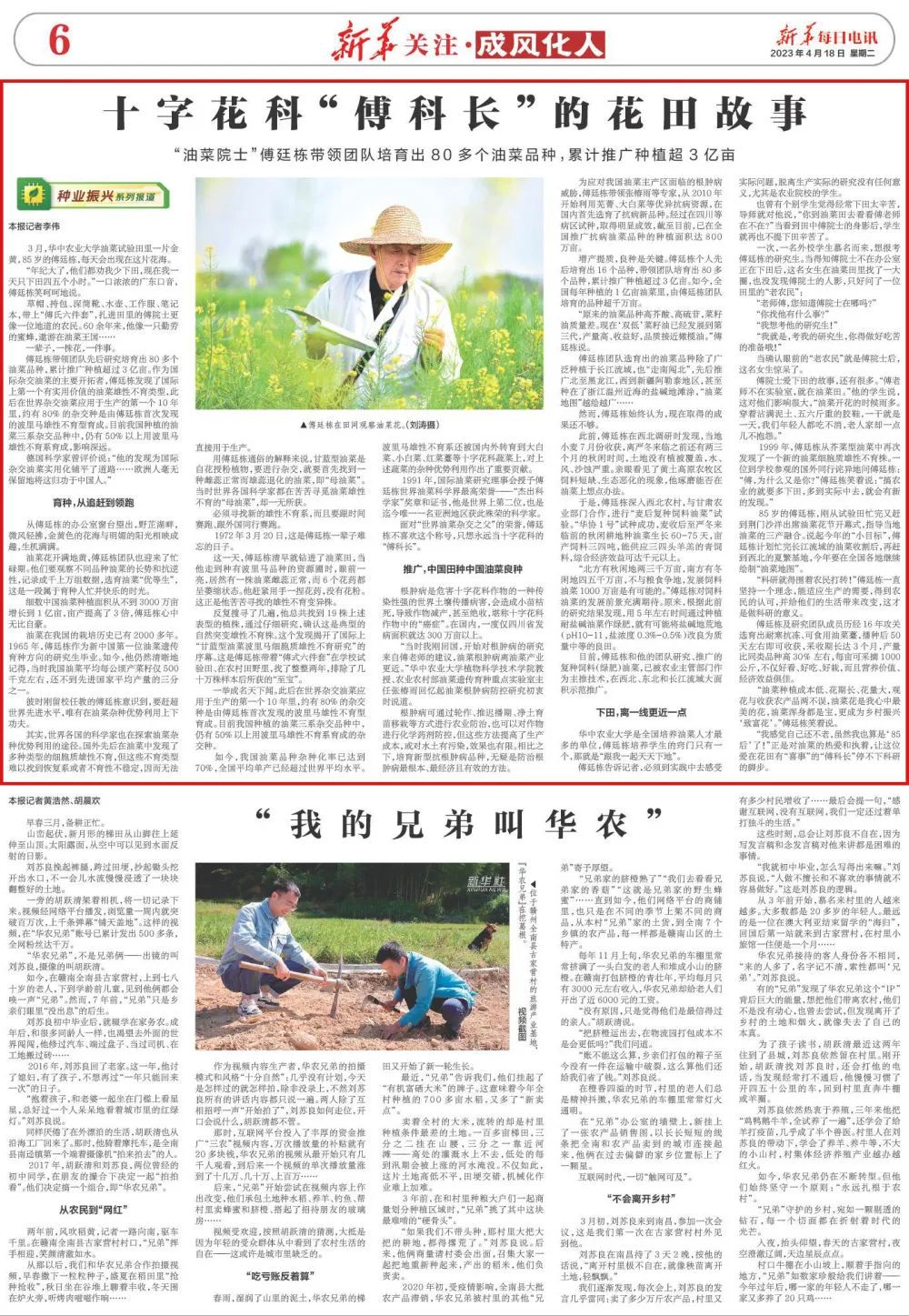细数中国油菜种植面积从不到3000万亩增长到1亿亩,亩产提高了3倍,傅廷栋心中无比自豪。