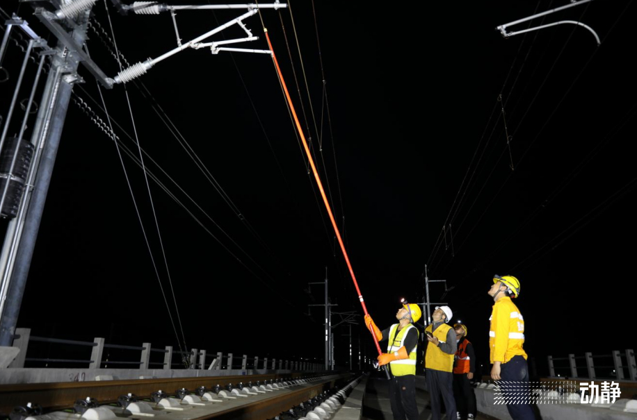 今天凌晨2点8分,随着最后一条供电臂送电成功,贵南高铁贵州段接触网实现“电通”。送电之后,贵南高铁贵州段接触网直接带电可达27.5千伏,为列车运行提供电力动能。