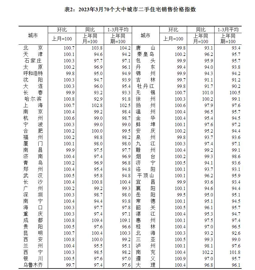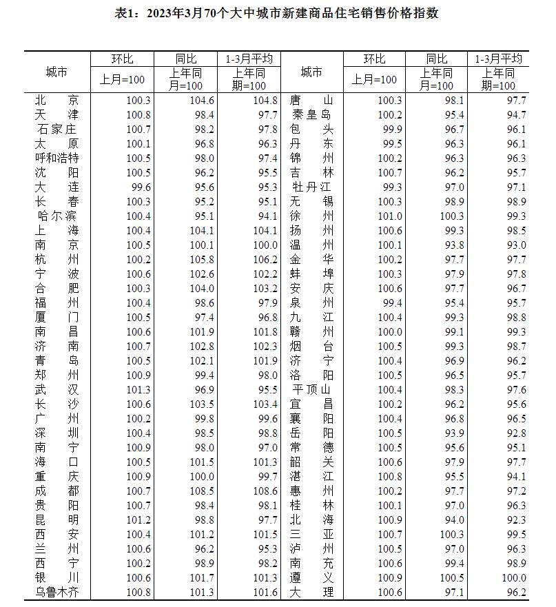 2023年3月份,70个大中城市中商品住宅销售价格上涨城市个数增加,各线城市商品住宅销售价格环比上涨,一线城市商品住宅销售价格同比上涨、二三线城市同比降幅收窄。
