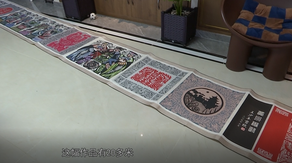 在不断的创新下,王少丰一次次突破新高,其中他最具代表作之一就是《贵州恋歌》,这幅作品全长20.8米,是目前国内最长的一幅套色剪纸。