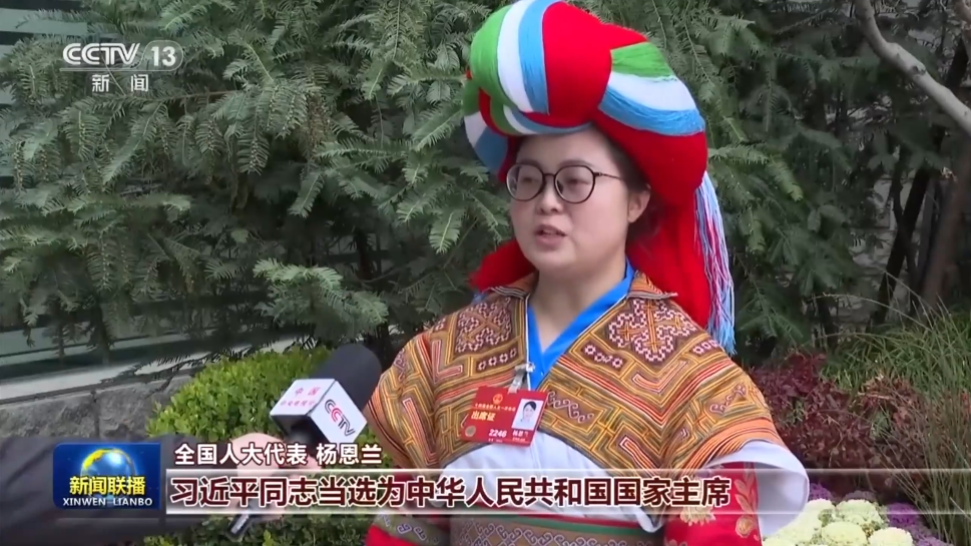 贵州省全国人大代表杨恩兰表示,习近平同志当选为中华人民共和国国家主席,这是民心所盼所向,历史的选择。作为一名“三农”工作者,回到基层后,将第一时间将两会精神传达到地方群众心中,帮助老百姓办好事、办实事、解难事,为乡村振兴献计出力。