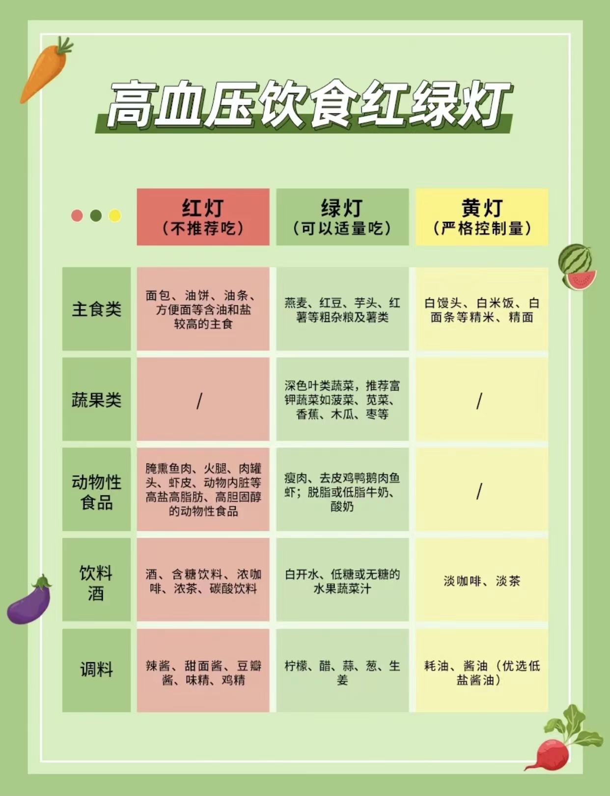 中国膳食指南推荐:每人每天摄入6g以下盐。尽量少食钠盐较高的食品:如苋菜、腐乳、火腿,各类炒货。少吃辛辣油腻的食物,食用油建议:菜籽油,橄榄油,茶籽油这类不饱和脂肪酸高的油。少食用动物油、棕榈油等多饱和脂肪酸的油脂。