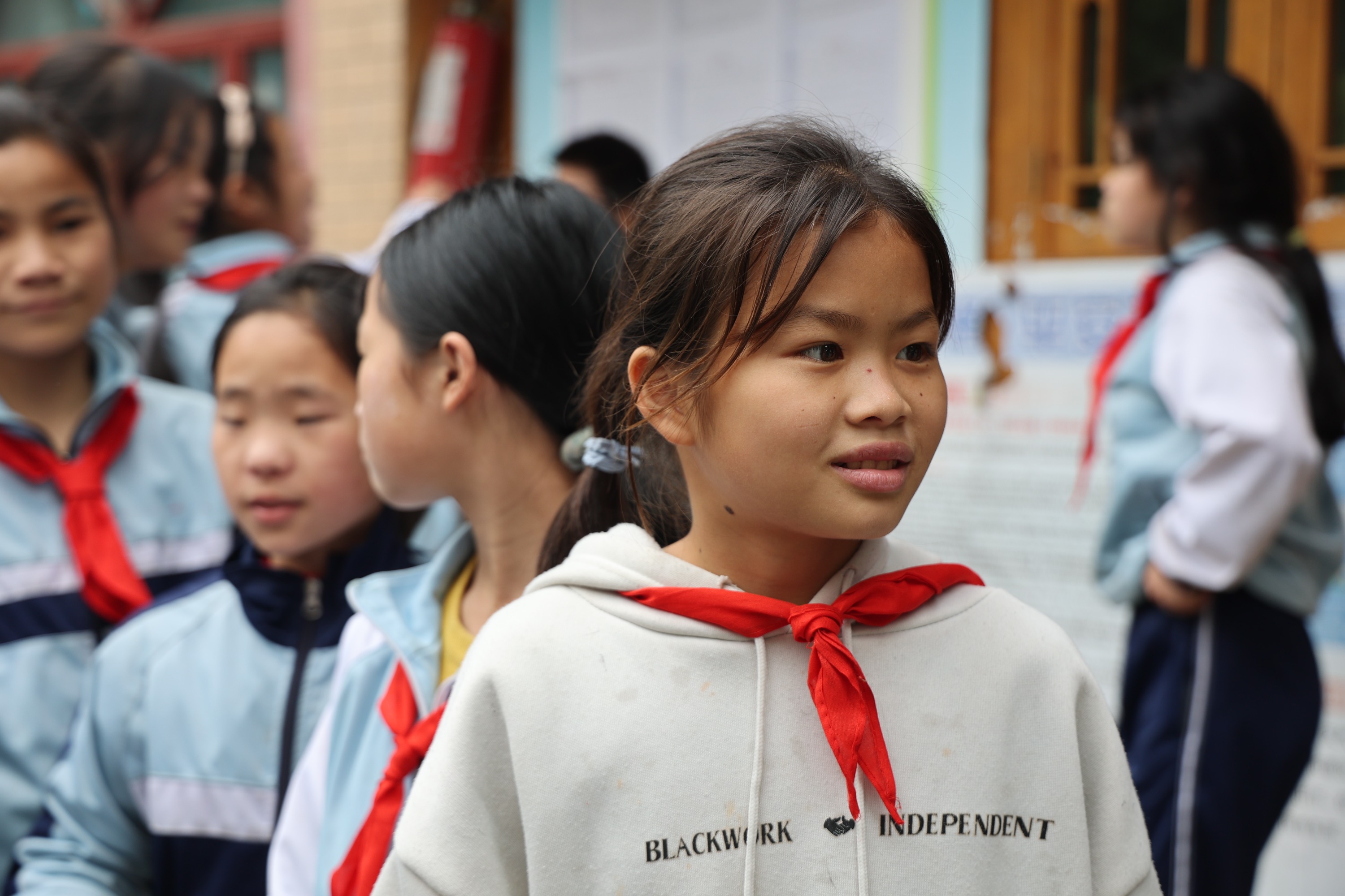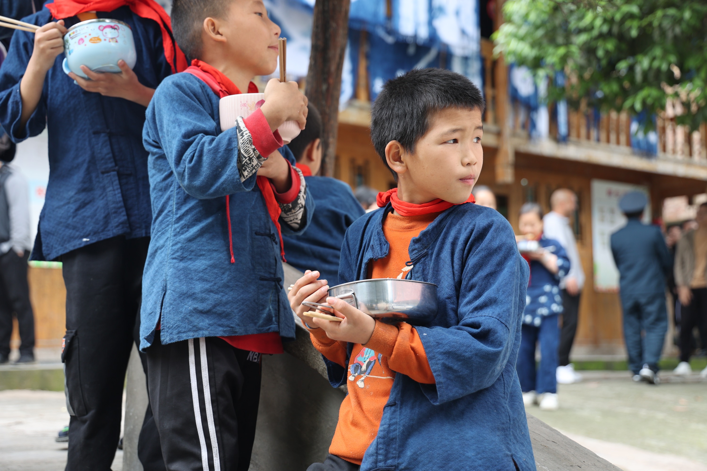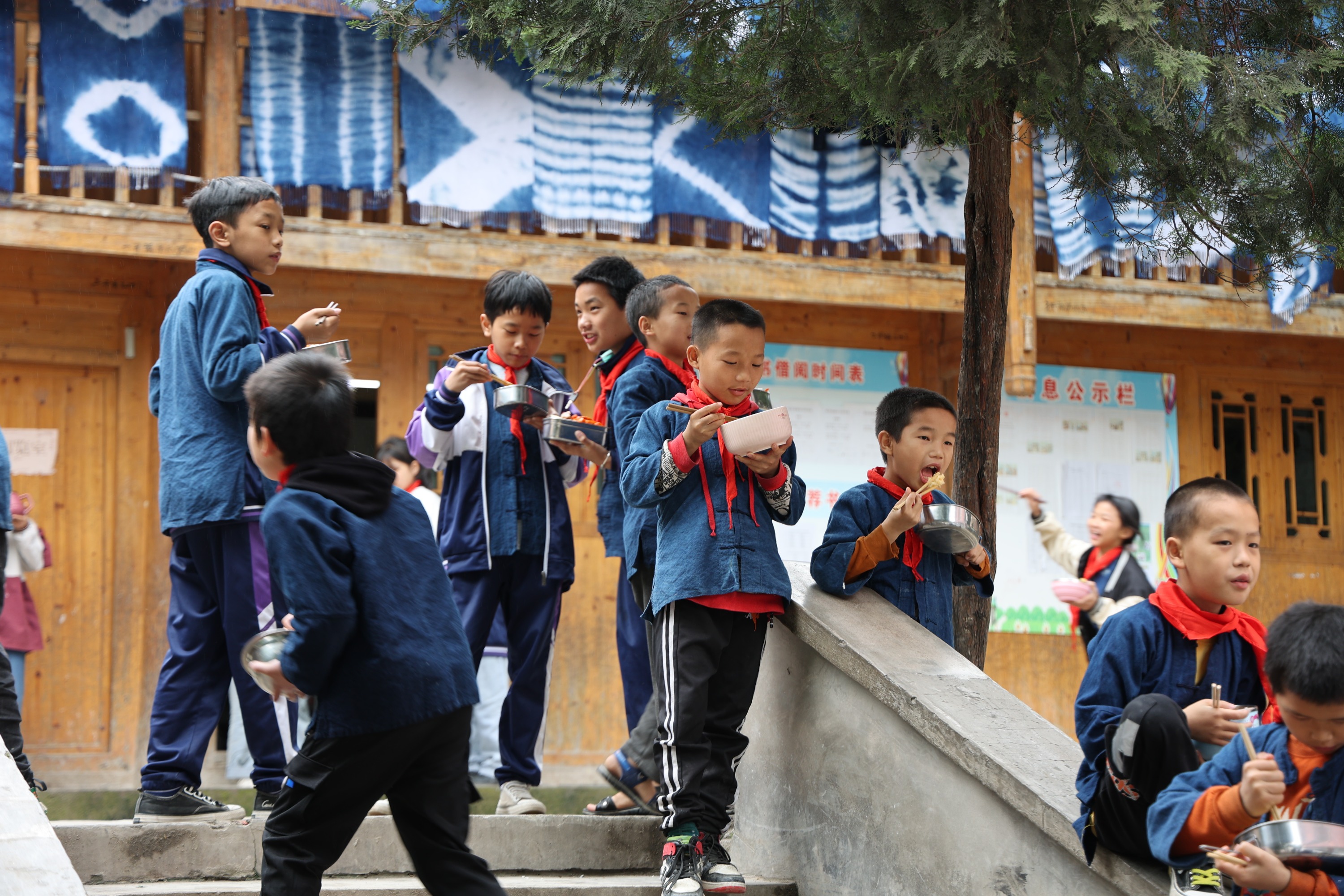黄古小学不算大,一栋三层砖房作为教学楼,一栋两层木房作为微机室、苗族技艺传授室、爱心书屋以及食堂等。尽管学校不大,孩子们却能在这里尽情玩耍,他们会玩各种游戏,比如跳绳、扔沙包、老鹰捉小鸡等,欢声笑语和嬉笑打闹声填满了整个校园。