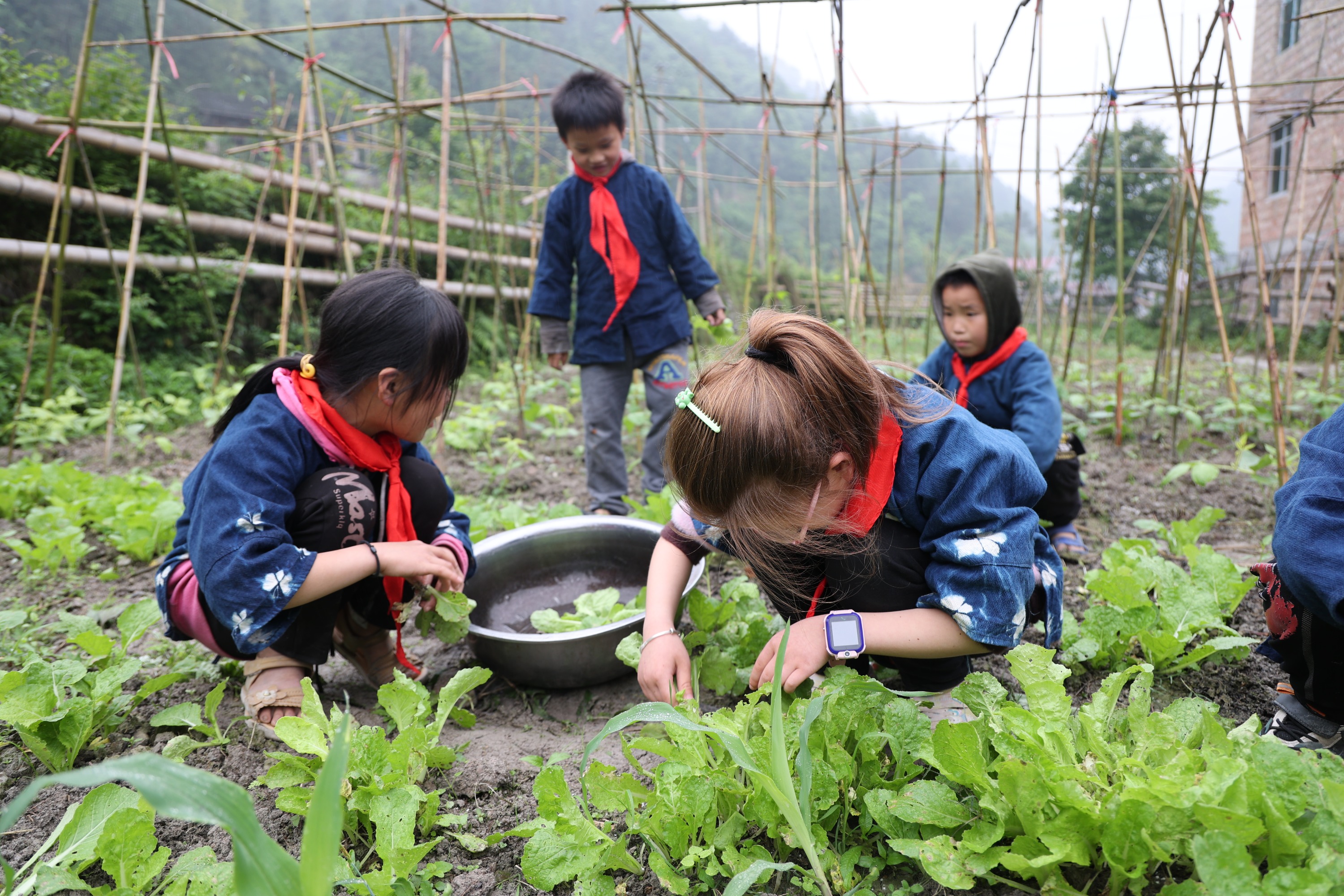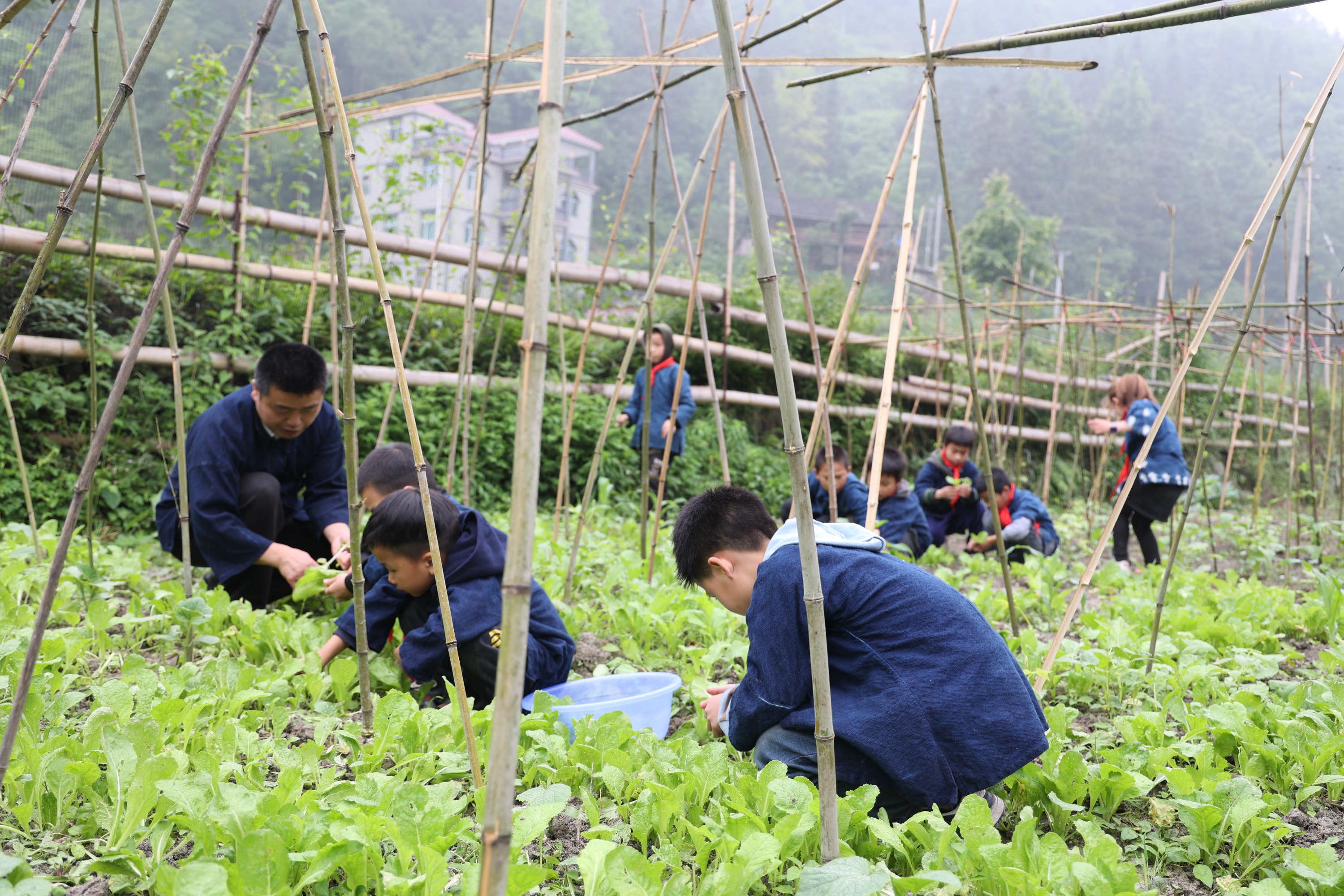 一是民族文化课,这堂课教授孩子们学习蓝靛染和苗族刺绣。通过植物染色,将一张张古朴的素布染成不同层次的蓝色,最后做成孩子们的校服。二是劳动课,这堂课教授孩子们种植蔬菜瓜果,最后成为自己的盘中餐,这个过程,也让孩子们懂得了“粒粒皆辛苦”的道理。