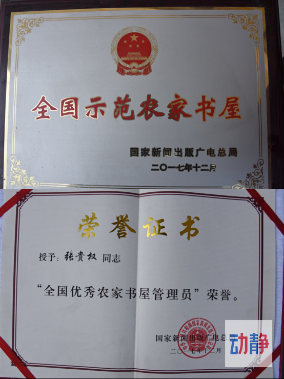 2017年,小草书屋被授予“全国示范农家书屋”荣誉称号,成为仁怀市唯一获此殊荣的农家书屋,张贵权也获得了“全国优秀农家书屋管理员”的荣誉。