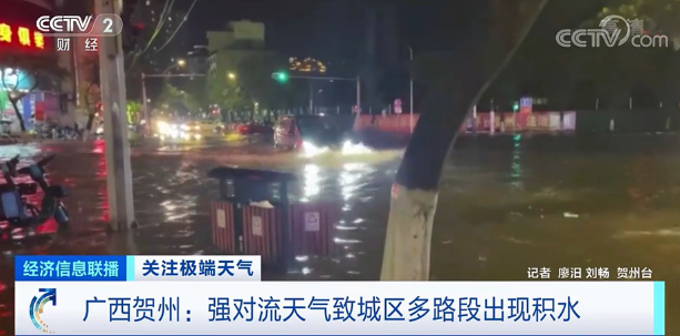22日晚9点左右,广西贺州雷雨交加,之后下起了冰雹,城区铜锣湾路段及多个小区出现积水,不少停放在路边的车辆被泡在水中,还有车辆在涉水时抛锚。
