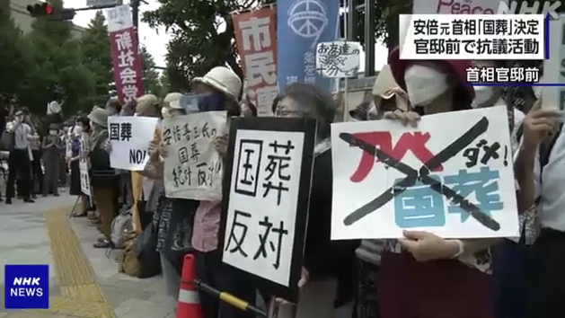 日政府决定为安倍举行“国葬”,数百民众今天在首相官邸前抗议