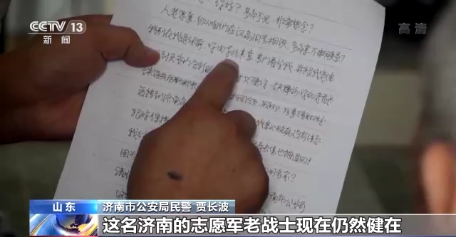 济南市公安局民警 贾长波:非常幸运的是,这名济南的志愿军老战士还健在,身体还很硬朗,另外一名战友很不幸,20世纪60年代因病逝世了。