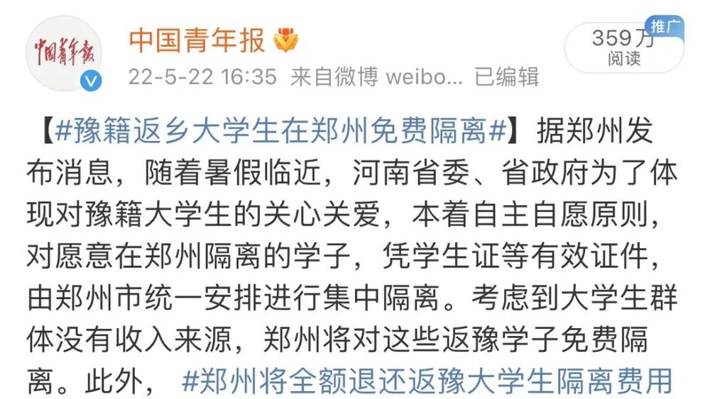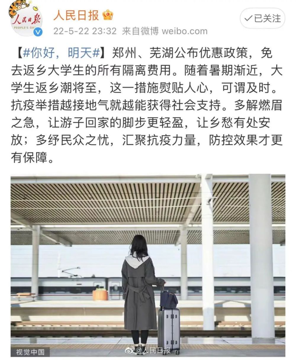 5月22日,安徽芜湖、河南郑州两地“返乡大学生隔离费用全免”的消息,引发关注。