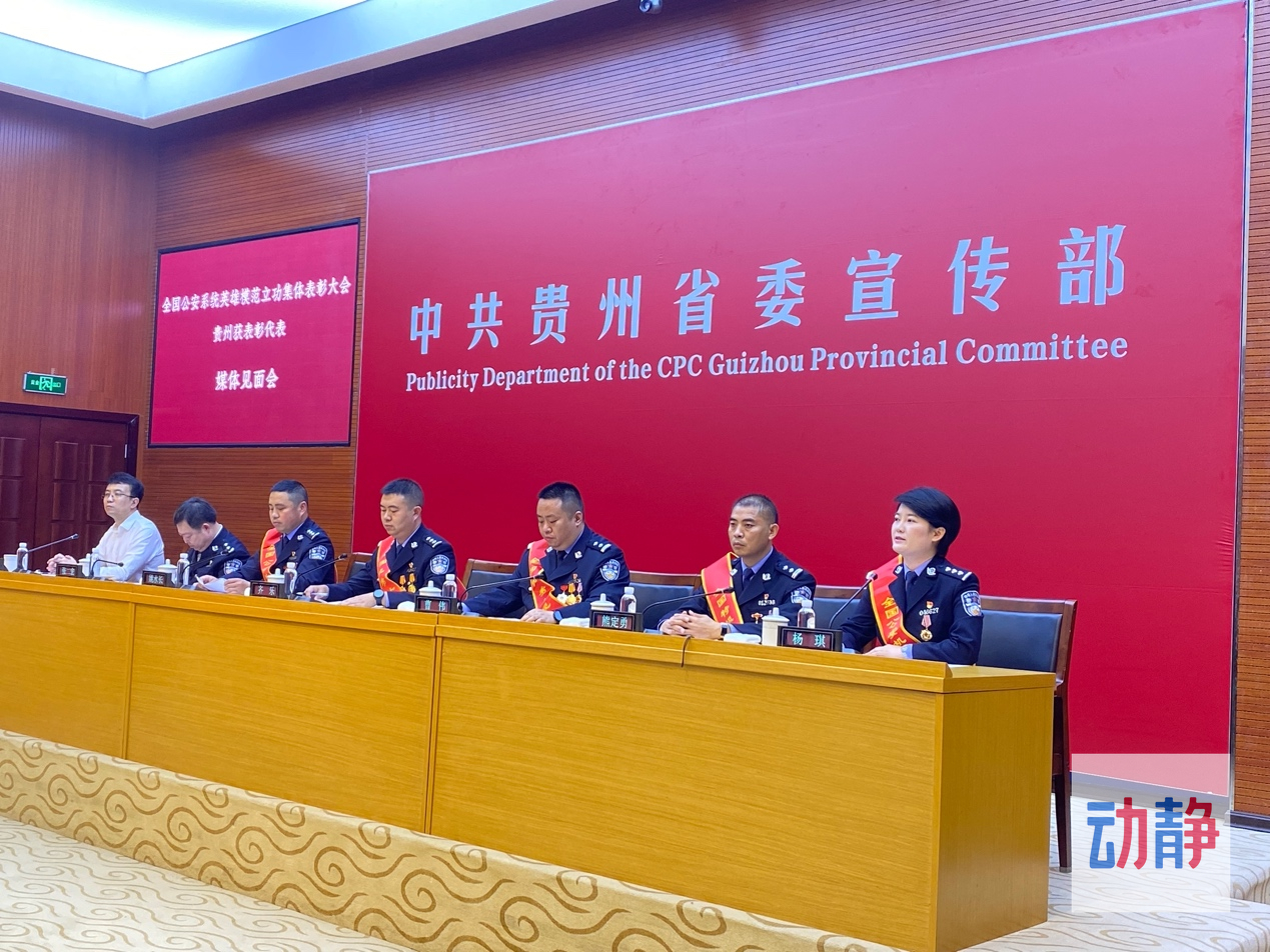 见面会上,荔波县公安局旅游警察女子中队杨琪(全国公安机关爱民模范集体)、遵义市公安局刑事侦查支队副支队长熊定勇(全国特级优秀人民警察)、贵阳市公安局刑侦支队分管副支队长曹伟(全国优秀人民警察)、安顺市公安局交警支队直属二大队一中队副中队长齐乐(全国优秀人民警察)、凯里市公安局旁海派出所教导员姚水长(全国公安机关爱民模范)等5位公安英模代表分别讲述了人民公安为人民的英勇事迹。