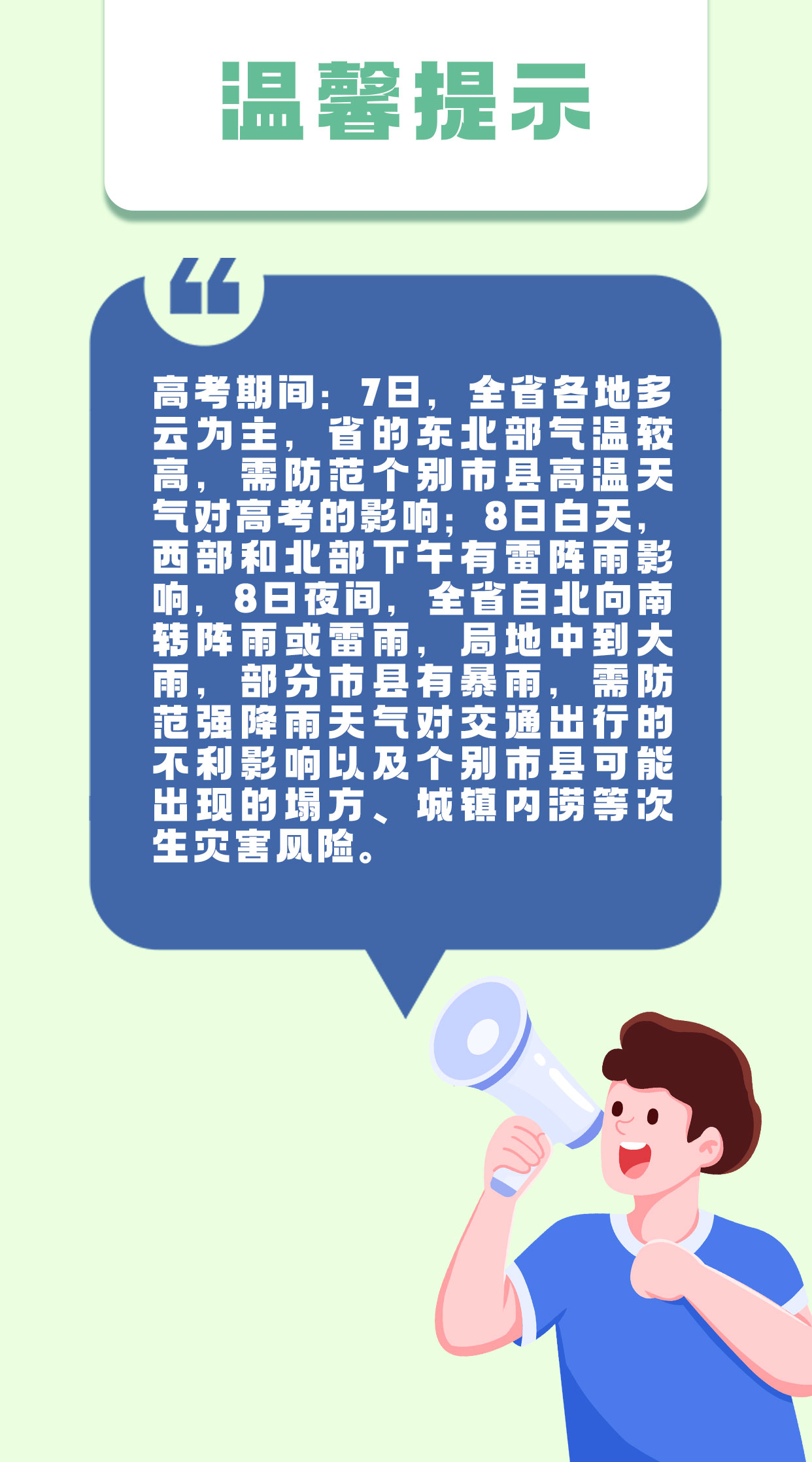 高考期间,全省无强降雨