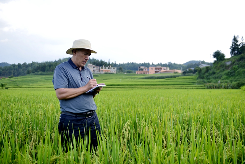 盘州市新民镇农村工作服务中心高级农艺师雷昌林潜心探索水稻增产增收技术,做给群众看,带着群众干,竭力帮助当地群众走红米产业增产增收新路。