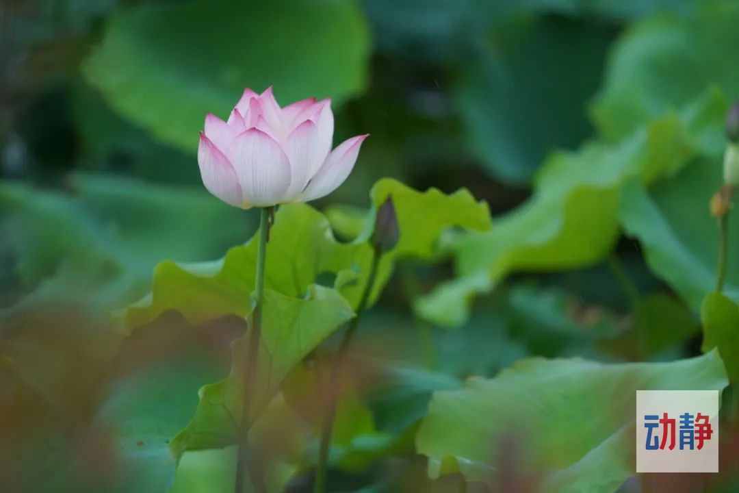 荷花每年都会开,但是每年去看都有不一样的感受。用无人机在空中拍摄时,大片的荷塘绿意盎然,在微风吹拂下荡起阵阵绿浪;近观时,一枝枝荷花亭亭玉立,竞相开放。