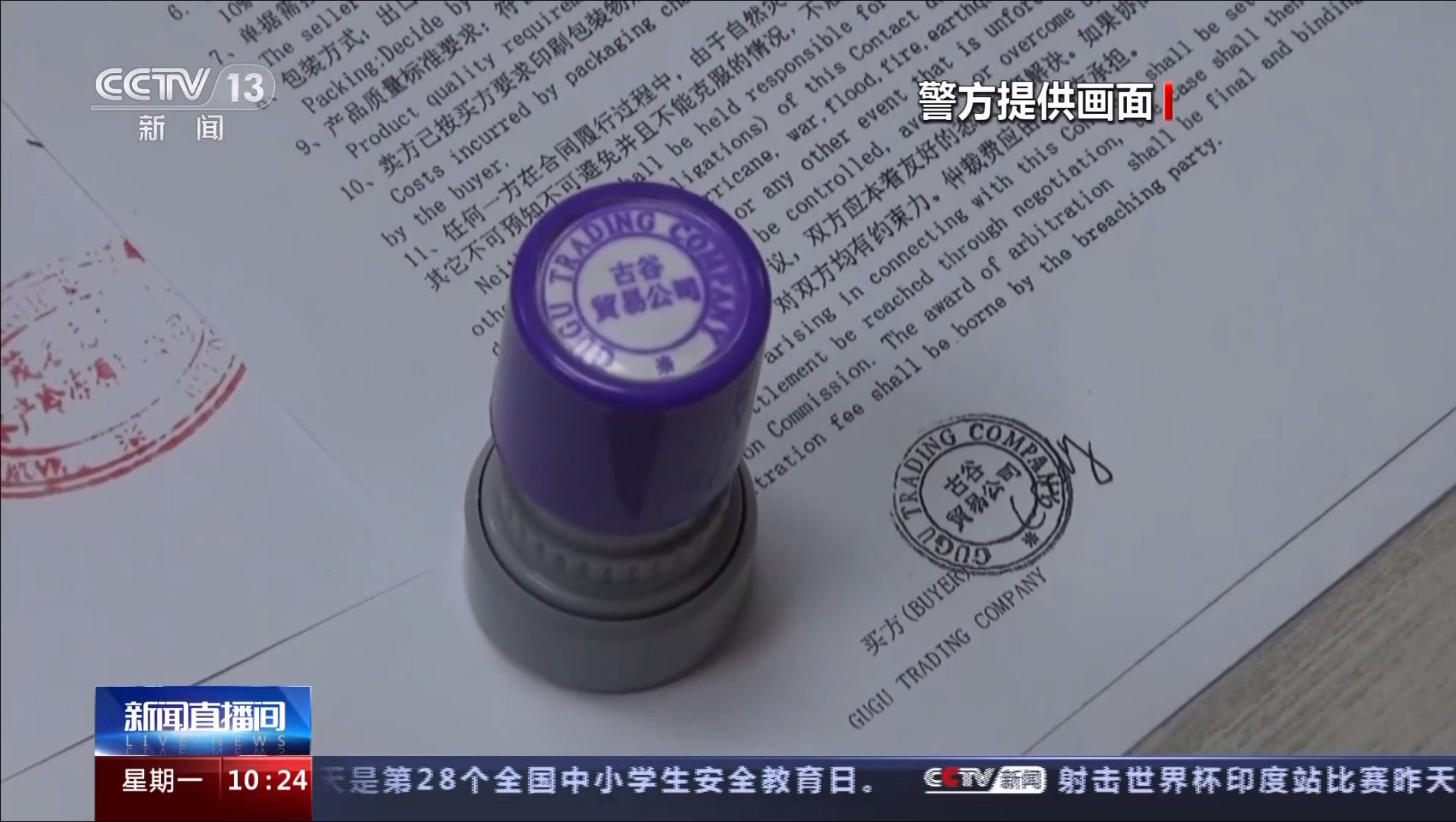 经了解,这枚圆形印章上的香港某贸易公司就是涉案公司租来作为道具的公司。民警找出一份罗非鱼片的出口购销合同,合同上左侧买方印章为香港某贸易公司,右侧卖方印章显示的则是涉案公司,他们正是用这种虚假合同来骗取出口退税。
