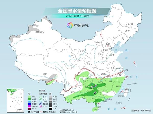 未来三天,南方多地雨水持续“在线”,降雨强度有所增强,局地将现暴雨。中央气象台预计,今天,新疆西部和北部、西藏南部等地局地有小雪或雨夹雪。江南、西南地区东部和南部、华南等地部分地区有小到中雨,其中,湖南西部、贵州东部、广西东北部等地的部分地区有大雨。