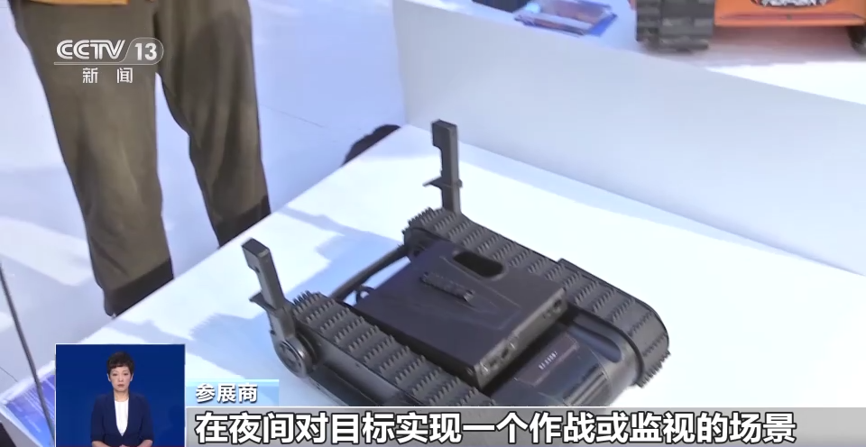参展商:比如这边竖起来的杆子,它就有3到4个摄像头,前面也有内置摄像头,而且前面它有集成一个红外的功能,在夜间对目标实现一个作战或监视的场景。