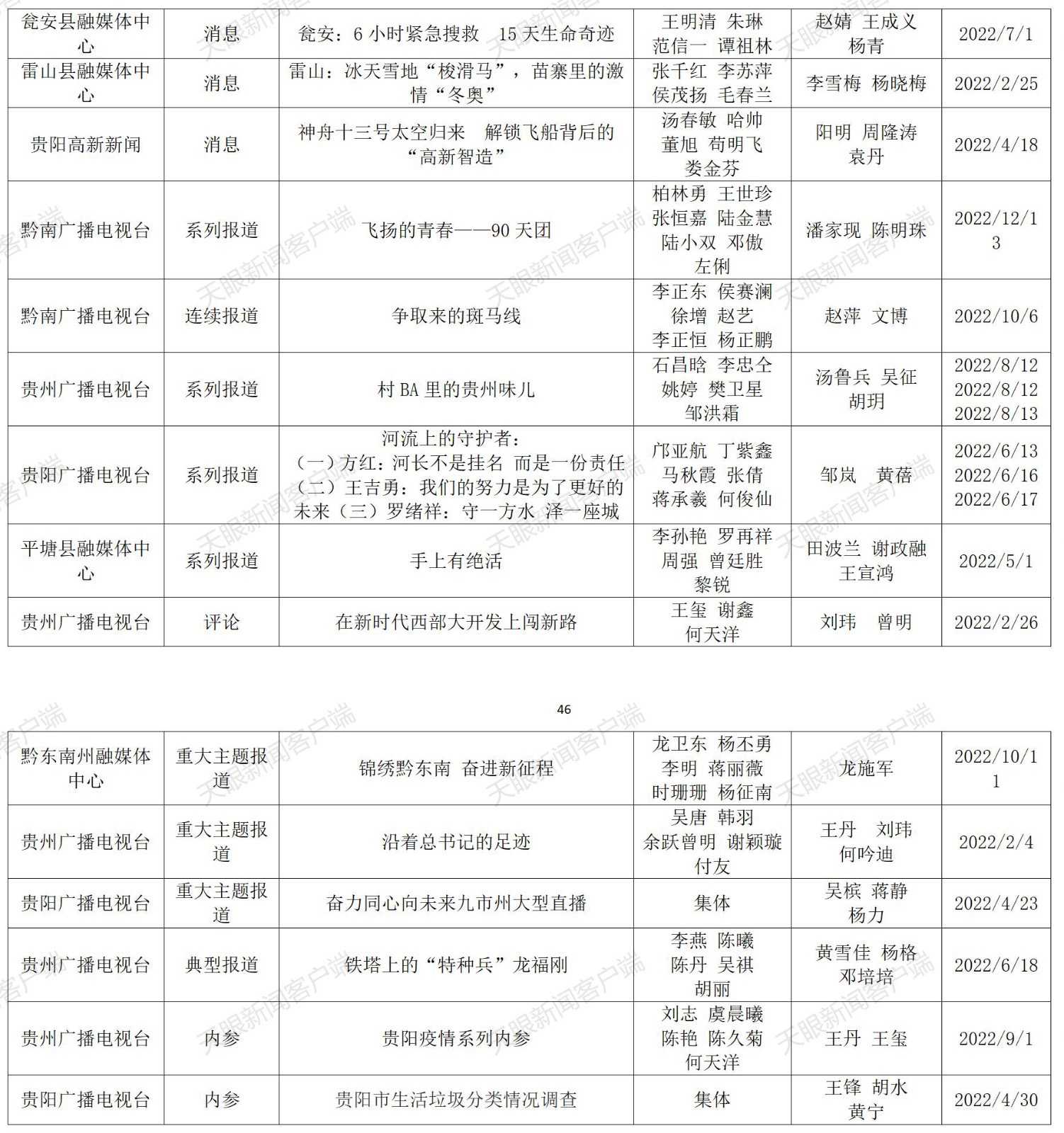 根据相关规定,现将贵州新闻奖获奖作品目录予以公示,公示时间为2023年5月18日-5月31日共10个工作日。公示期间如有异议或其他意见,请与省记协评奖办公室联系。