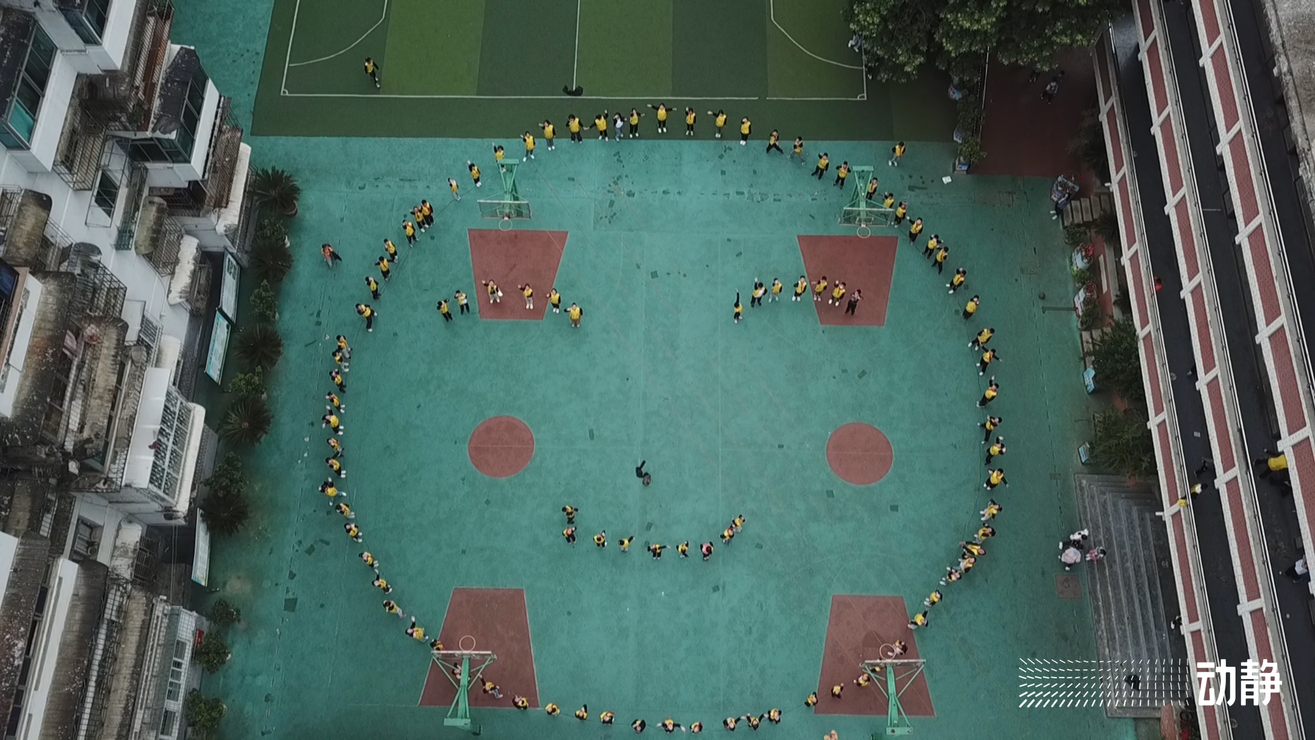 200多名同学还在操场上组成了一个巨型笑脸,纪念“世界微笑日”。