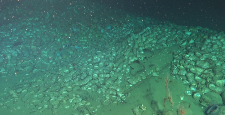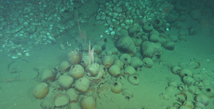其中一处定名为南海西北陆坡一号沉船,有多个疑似被船舱分隔开的成堆文物,最大高度达3米多,文物以瓷器为主,散落范围达上万平方米,推测数量超过十万件,根据出水文物初步判断为明代正德年间(1506—1521)。另一处定名为南海西北陆坡二号沉船,发现大量原木,尺寸相近、码放整齐,大多经过简单加工,初步研判是从海外装载货物驶往中国的古代沉船,初步判断为明代弘治年间(1488—1505)。