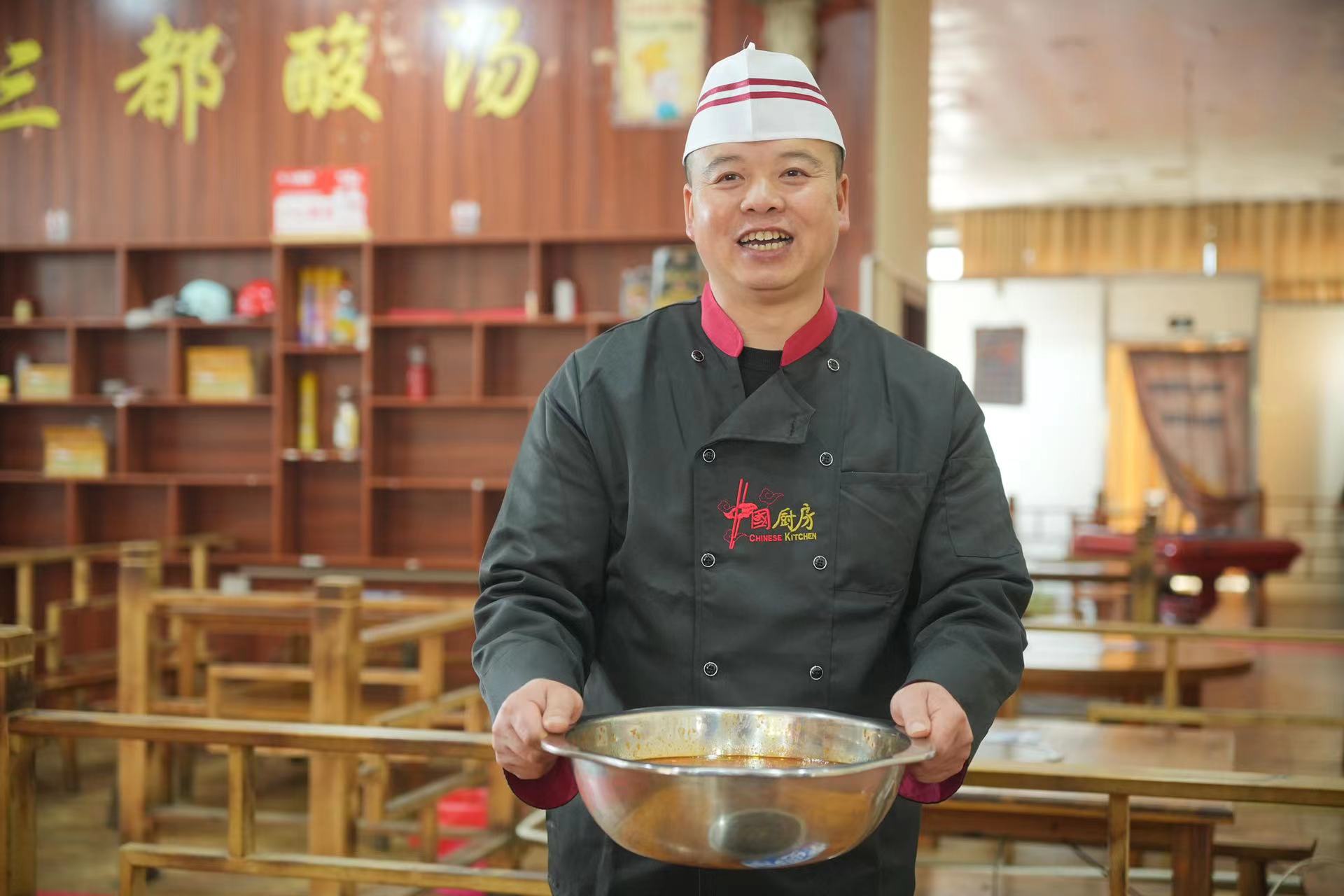 骆德全的酸汤牛肉火锅总是让食客赞不绝口,“不需要赚多少钱,只要大家吃得开心就好”,骆师傅的话里满是真诚和幸福。面对要做二十多桌酒席的艰巨任务,骆师傅表示不在话下,他已不再是孤身作战,只因家人就在身旁,幸福就在手边。