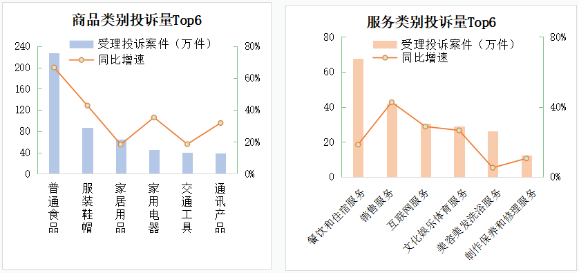 2022年,全国市场监管部门共受理商品投诉862.32万件,占投诉的65.81%,较上年提高4.37个百分点。