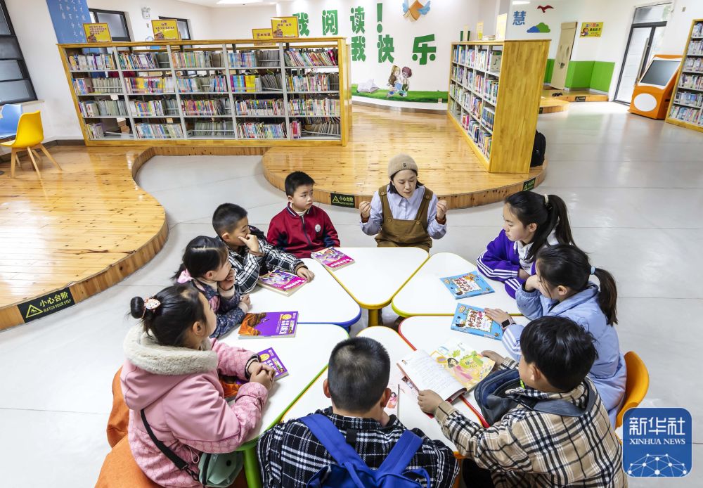 4月1日,图书馆工作人员在贵州省黔西市图书馆少儿阅览室开展阅读公益课。新华社发(范晖 摄)