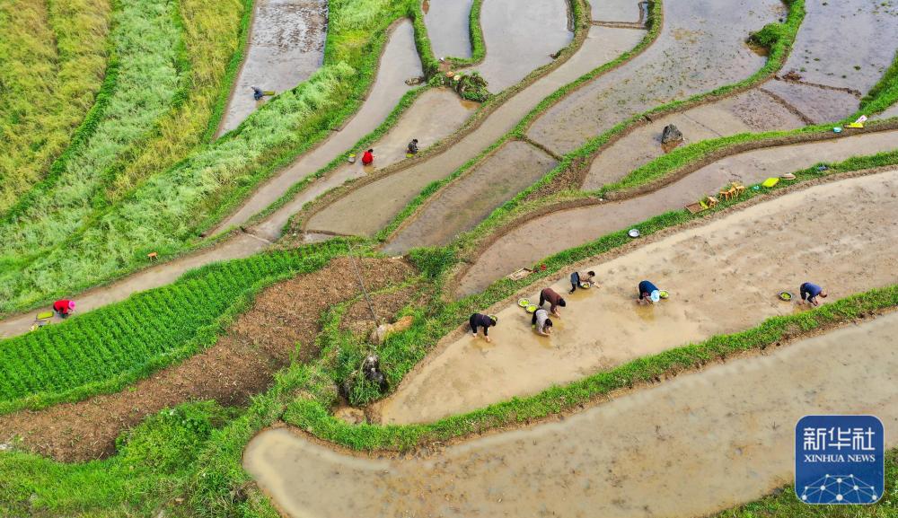 暮春时节,各地农民抢抓农时开展农事活动,田间地头一片忙碌景象。