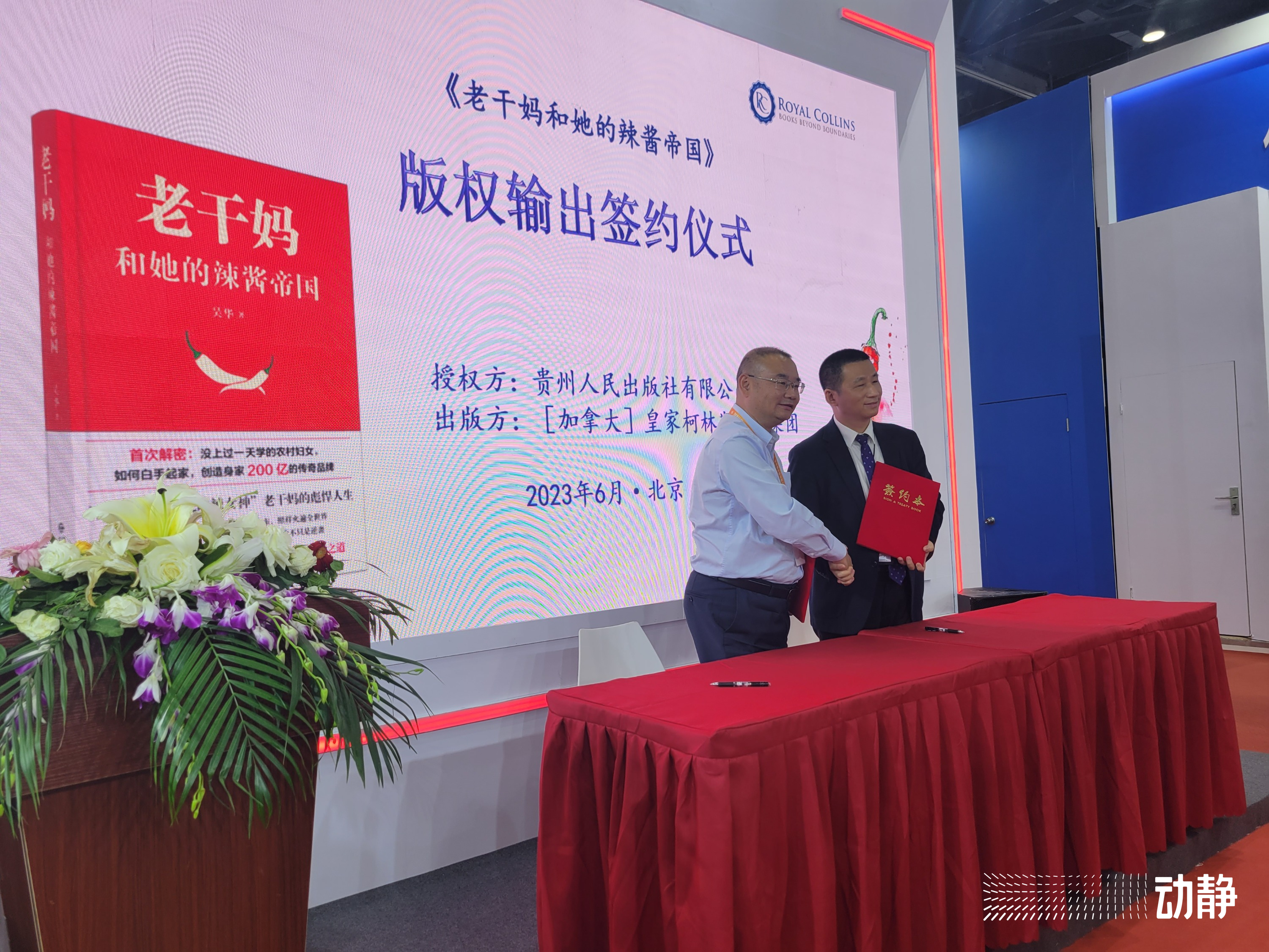 6月16日,在第29届北京国际图书博览会上,《老干妈和她的辣酱帝国》版权输出签约仪式举行,贵州人民出版社与加拿大皇家柯林斯出版集团签署该书英文版权授权协议。