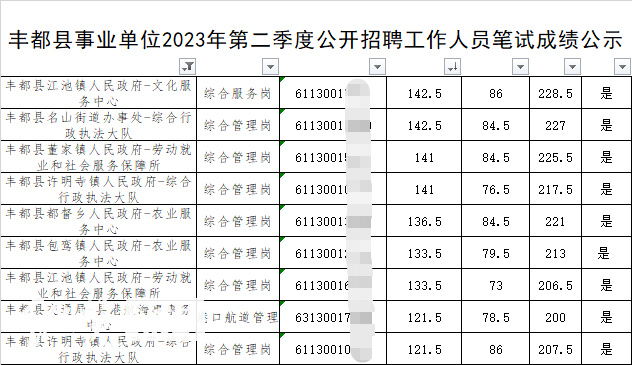 在丰都县人民政府官网,纵览新闻记者查询到7月14日丰都县人社局公布了丰都县事业单位2023年季度公开招聘工作人员笔试成绩表,该表显示,有7考生职测分数超过了130分,其中4名考生分数超过了140分,最高分达到142.5分,第一名与第八名121.5分的成绩分差达到21分;这几名考生的综应成绩区间为73分~86分。