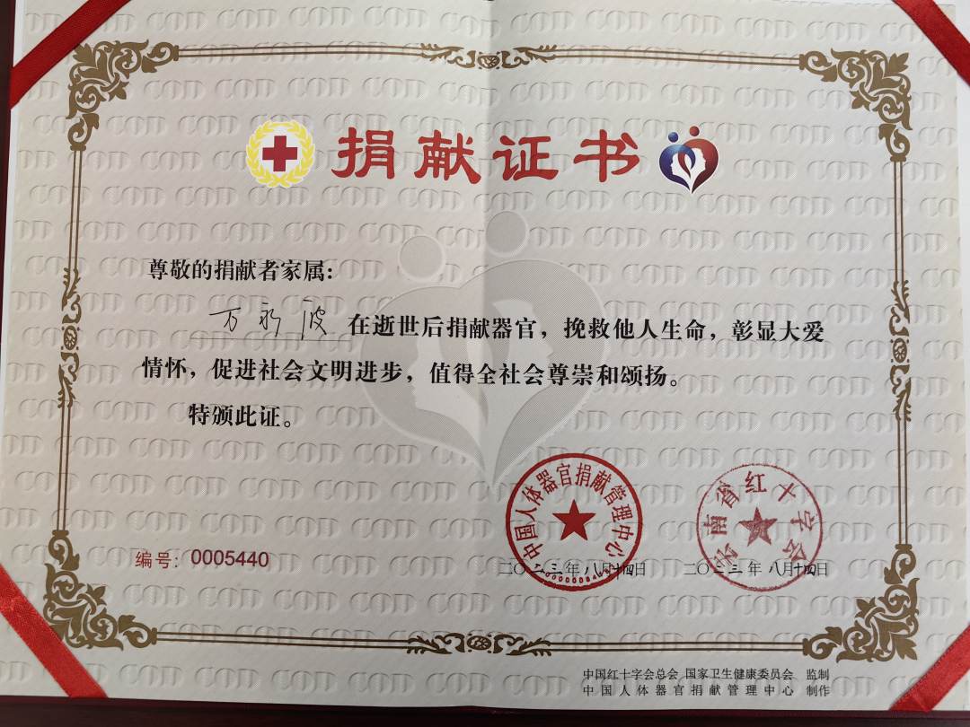 医院诊断万永波为脑血管意外,经全力抢救,依然未能救回他的生命。“受父亲的影响,我和弟弟都走上了人民警察的岗位。弟弟作为一名优秀的共产党员、退役军人,曾对他的妻子提过,如果发生意外,希望将自己的器官捐献给有需要的人。”哥哥万永松哽咽道。