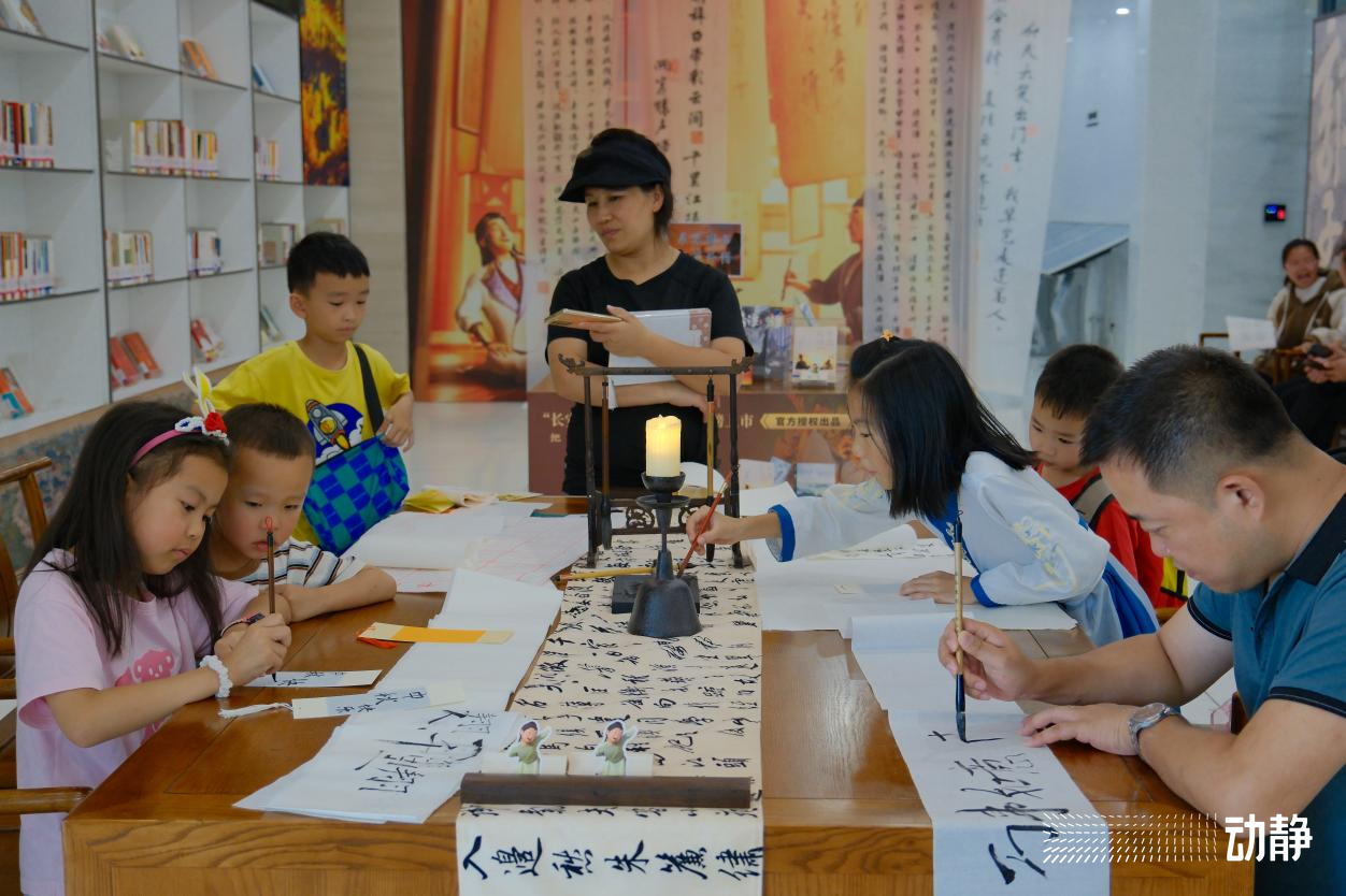在书法体验区,读者们聚在一起挥洒笔墨、以纸为媒,写下对节日的美好祝愿。