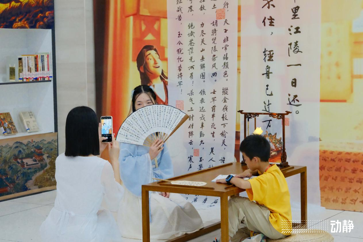 “着我汉家衣裳,兴我礼仪之邦”,更有一些读者身着汉服前来拍照打卡,翩翩汉服与主题展区完美融合,别有韵味。