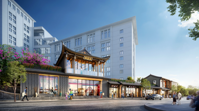 行走在街头巷尾,整个街区在街道、布景等各方面都凸显状元文化,代表性建筑“状元楼”复刻历史。此外,状元雅集、状元阁、状元坊等区域,采用了楼台亭阁的古风设计,新旧融合,更显魅力。