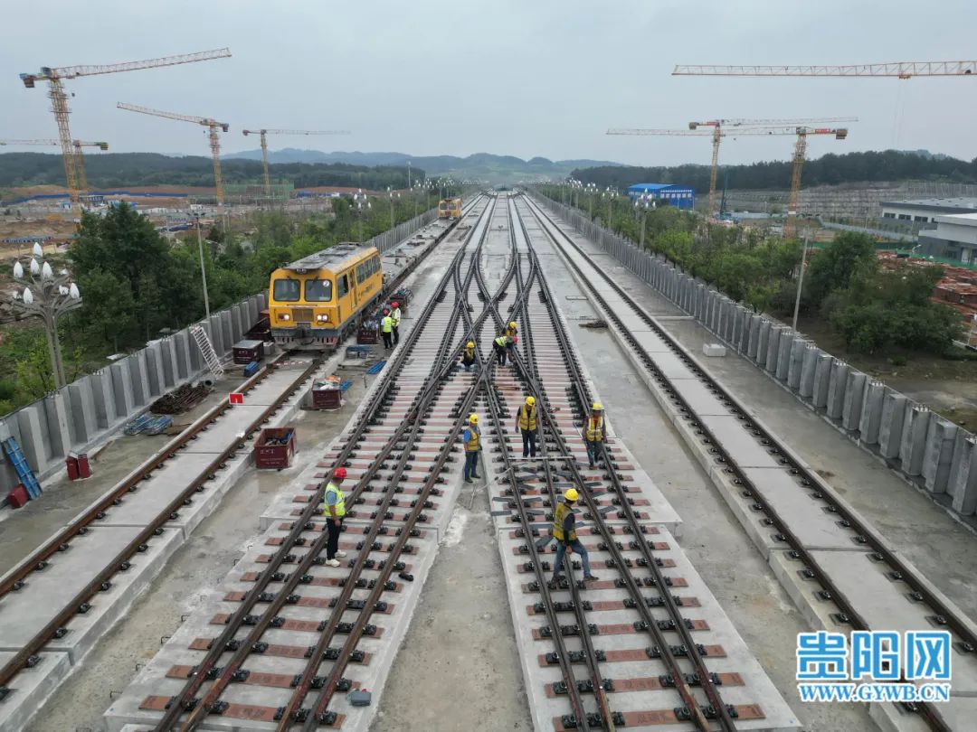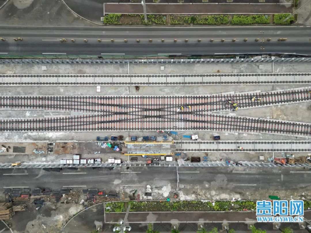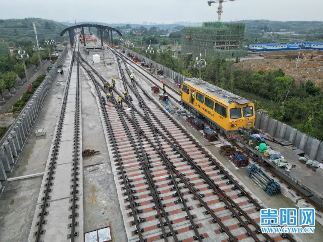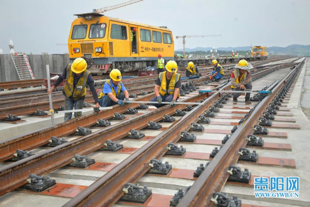 7月18日,中铁十一局工人在贵阳轨道交通S1线贵安新区麦湖路站进行道岔精调作业。