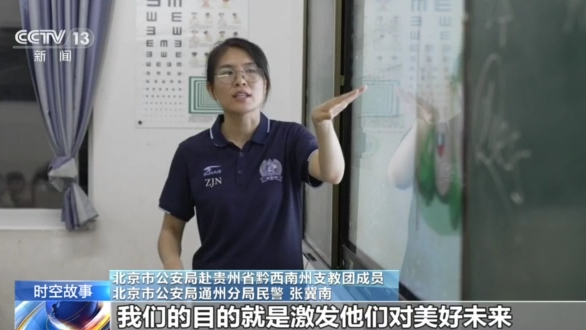北京市公安局赴贵州省黔西南州支教团成员 北京市公安局通州分局民警 张冀南:孩子没有走出过大山,对未来对外面的世界不了解,我们的目的就是激发他们对美好未来、外面世界的渴望和向往,激发他们的内生动力。
