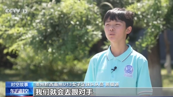 贵州黔西南州U13女子足球队队员 熊银迪:每一场比赛结束后,我们就会去跟对手去跟她们交好朋友。我从足球学到了尊重别人和尊重自己。