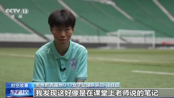 贵州黔西南州U13女子足球队队员 徐佳佳:我们练完球教练说了一些知识,我们会记在本子上。