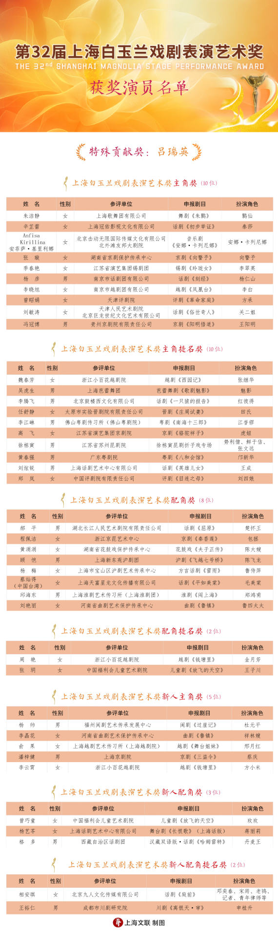 上海白玉兰戏剧表演艺术奖创设于1989年,是我国戏剧领域最具影响力和权威性的表演艺术奖项,与中国戏剧梅花奖并称“南兰北梅”。2023年,冯冠博凭借《阳明悟道》斩获第31届中国戏剧奖·梅花奖。