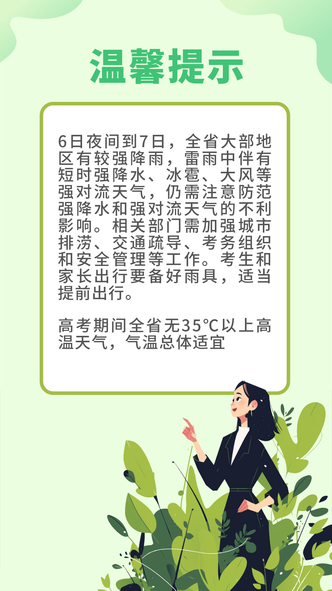 高考气象站丨高考期间贵州多阵雨天气,省中部及以南午后到夜间有强降雨
