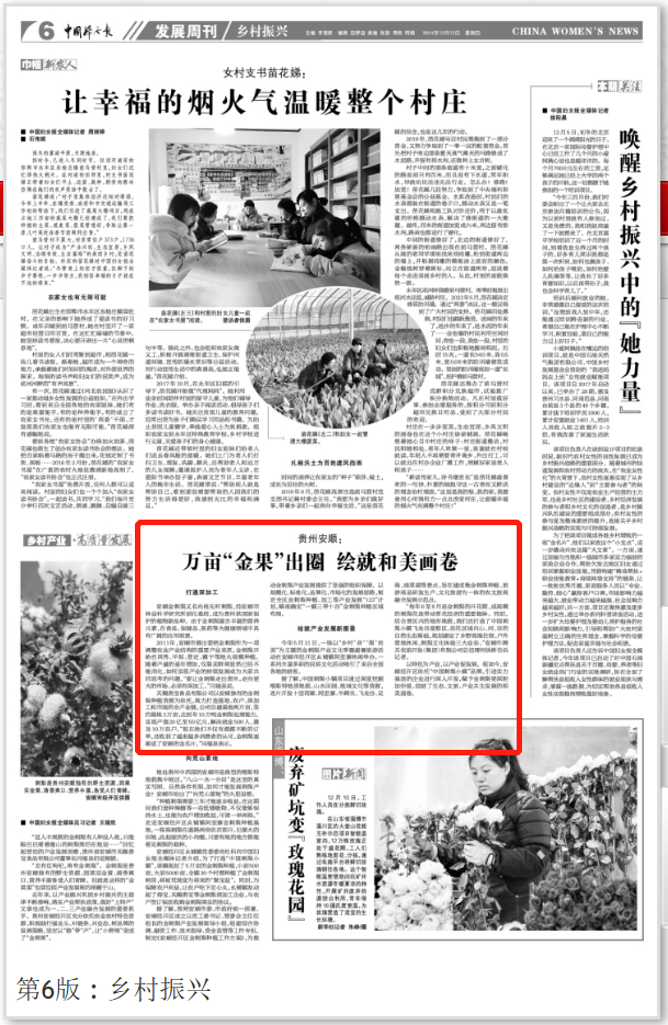安顺经开区幺铺镇党委委员杜科向中国妇女报全媒体记者介绍,为了打造“中国刺梨小镇”,该镇规划了5万亩的金刺梨种植,小到500亩,大到5000亩,全镇30个村都种植了金刺梨树苗,将坡荒地变为将来的“聚宝盆”。同时,为保障农户利益,让农户吃下定心丸,幺铺镇发动起了得宝、天赐贵宝等金刺梨深加工企业,与农户签订保底收购金刺梨果实的协议。