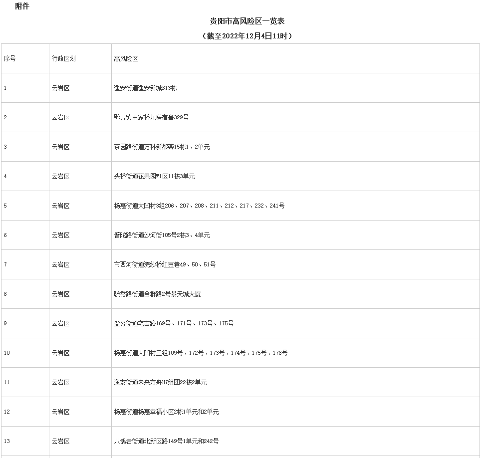 附件:贵阳市高风险区一览表(截至2022年12月4日11时)