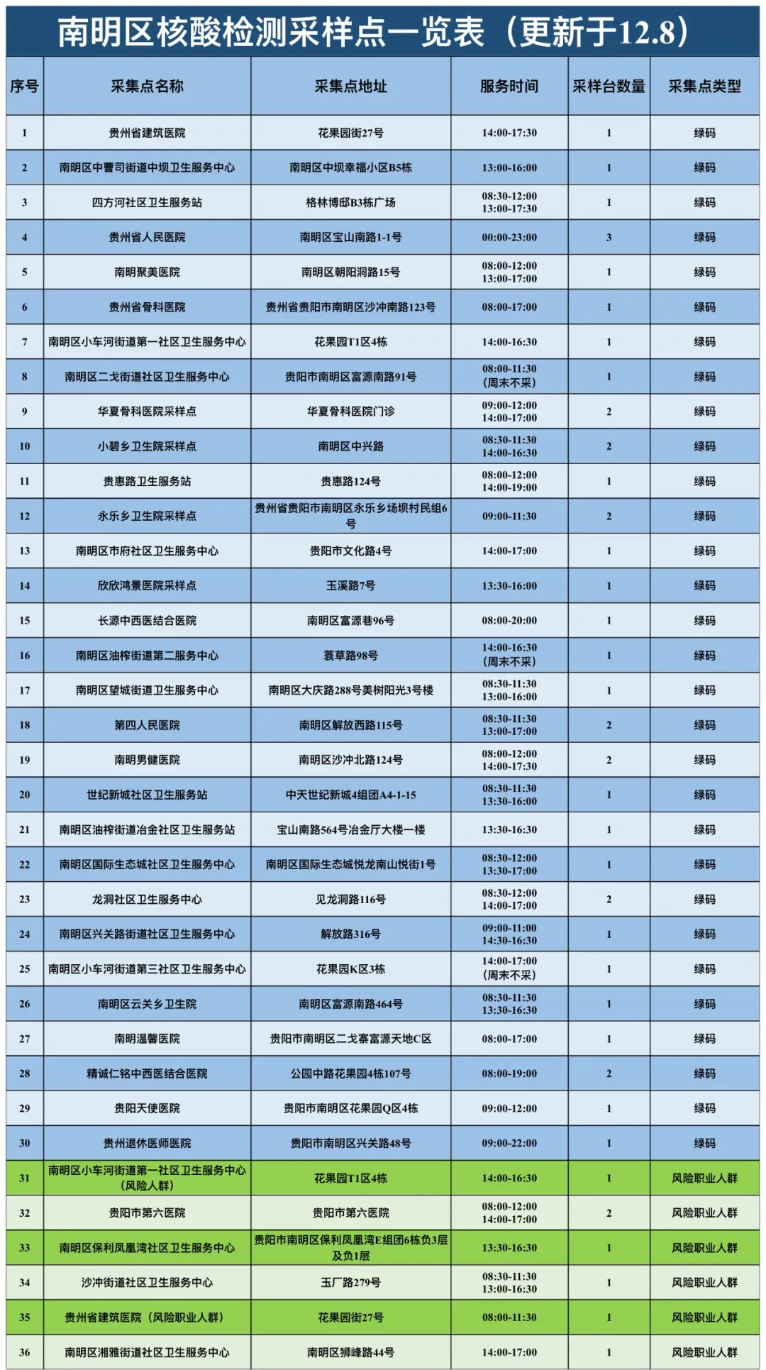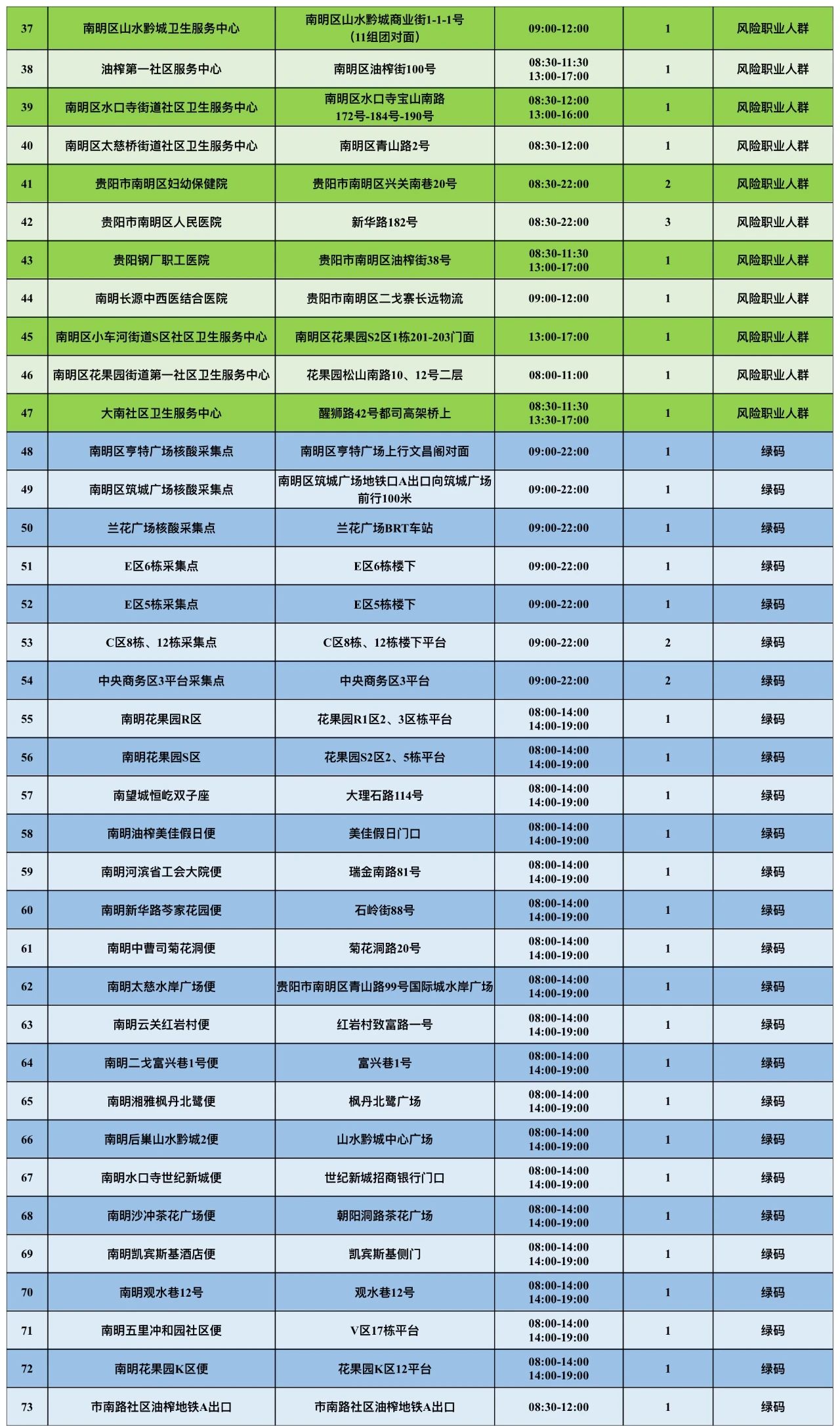 为深入贯彻落实国家、省、市疫情防控有关决策部署,坚持第九版防控方案,落实二十条优化措施和疫情防控“新十条”,最大限度保障群众正常生产生活。南明区根据疫情防控工作需要,对全区核酸检测采样点的位置及时间进行优化调整,请市民根据自身需要,就近、错峰选择采样点采集核酸。