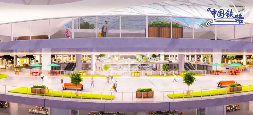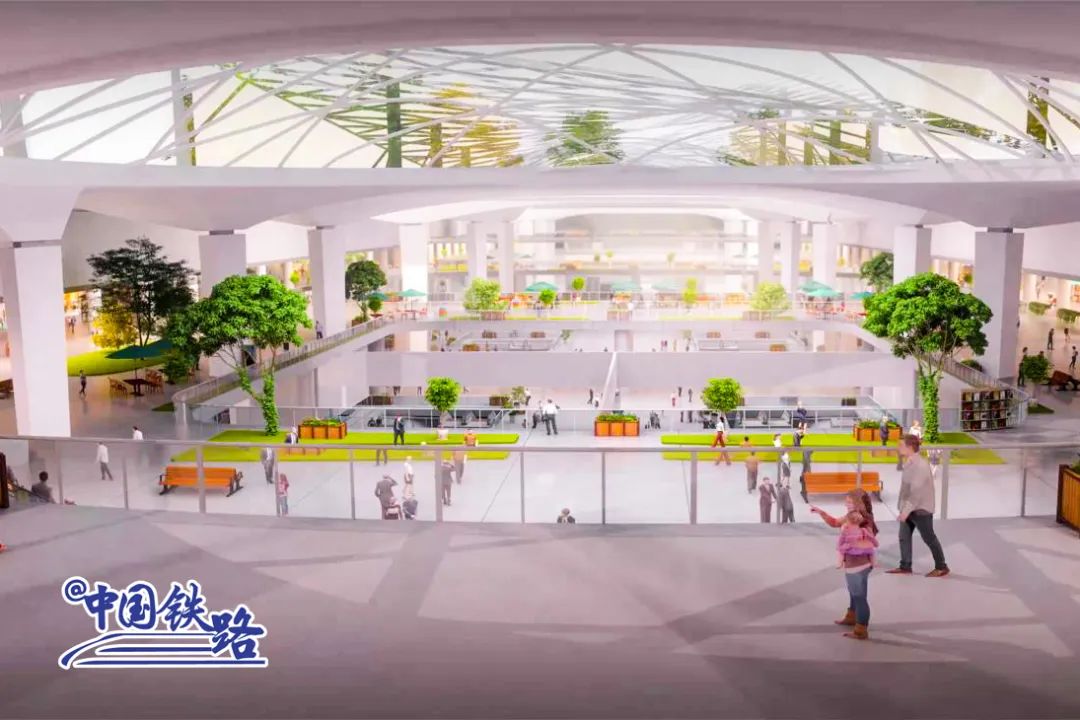 “京帆”屋盖融入城市花园设计理念,形成独特景观,未来将打造出“檐下绿色城市会客厅”,为市民提供丰富多彩的活动场所。